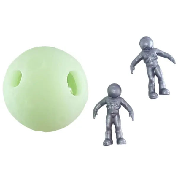 • These Moon Astronaut Stretchy Toy - RECEIVE 1 - explorers are squishy and can be put inside the glow in the dark moon. 2.5" dimensions. Very durable and the astronauts come in a pair and can be put inside and out of the moon. Perfect fidget toy addition to any fidget toy collections.