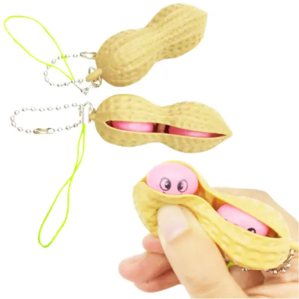• Peanut Pod Peak A Boo -  RECEIVE 1 - 2.25 inches length - These cute pods can be squeezed to pop a peekaboo! Two Peanuts inside that all can be revealed with a squeeze!