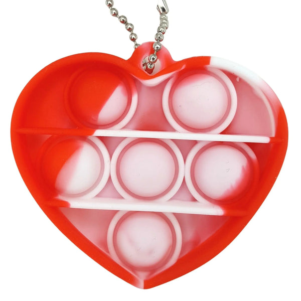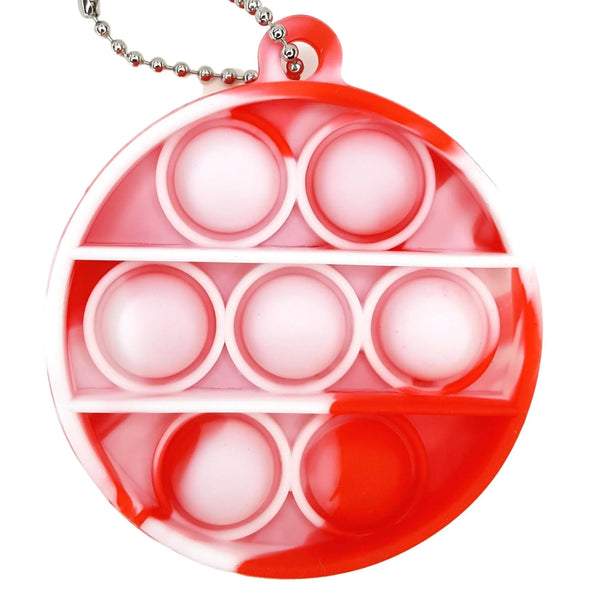 • Receive One Push Pop Key Chain Toy - 3 inch dimensions we offer three different shapes heart, square and circle - one will be picked at random and can hook to your key chain for convenience any where you go! This style is one of many varieties in the market, but these are marble red and white in color.